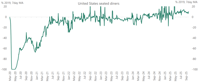 Por suerte para los inversores, en Estados Unidos contamos con una fuente de información muy extensa y que nos permitirá tomar la temperatura al ciclo económico más fácilmente que en otros países. Esta semana la gestora Apollo ha iniciado una serie de publicaciones semanales en las que analizará datos como las reservas en restaurantes registradas en Estados Unidos (AlternativeData100525.pdf).